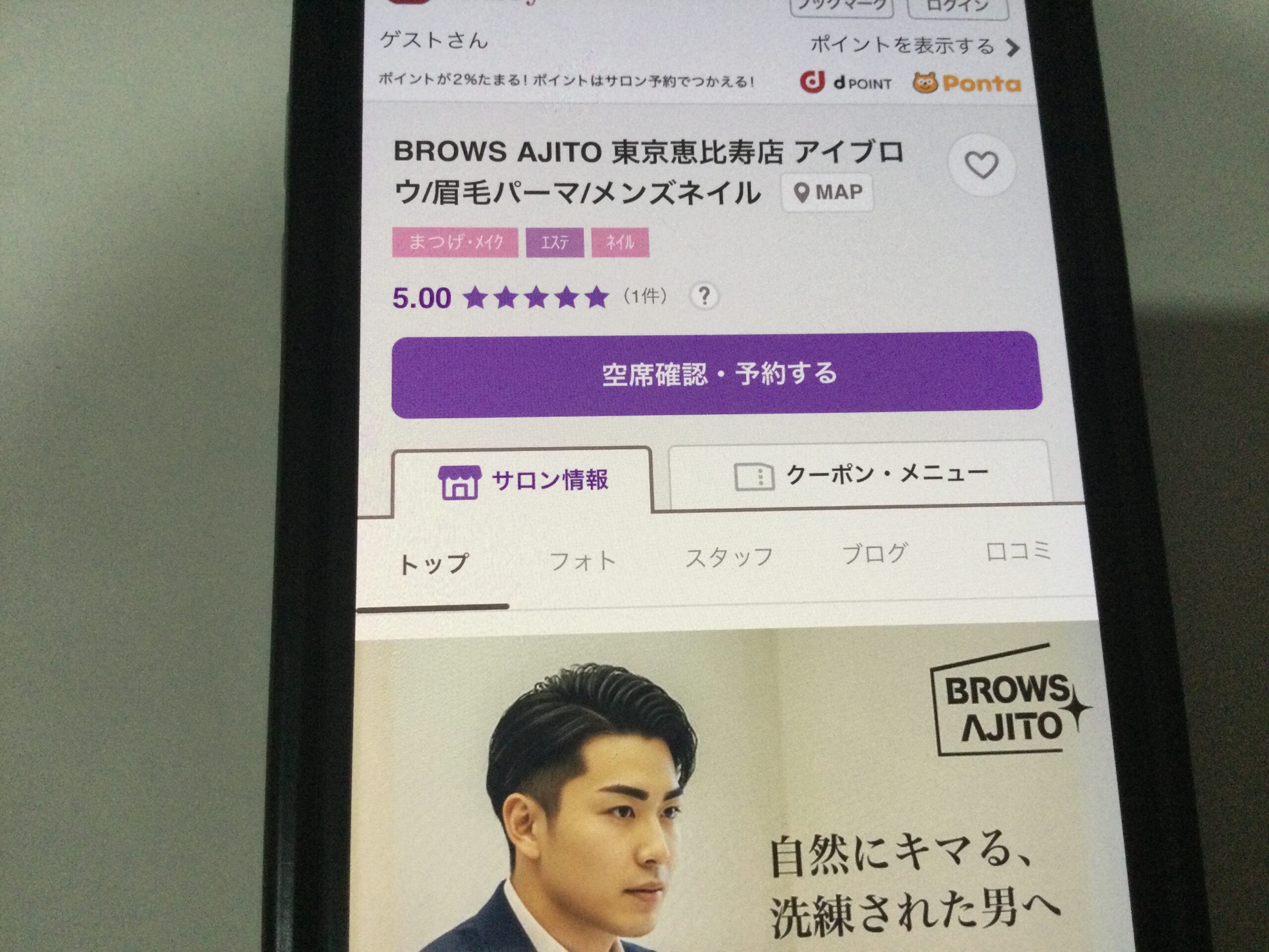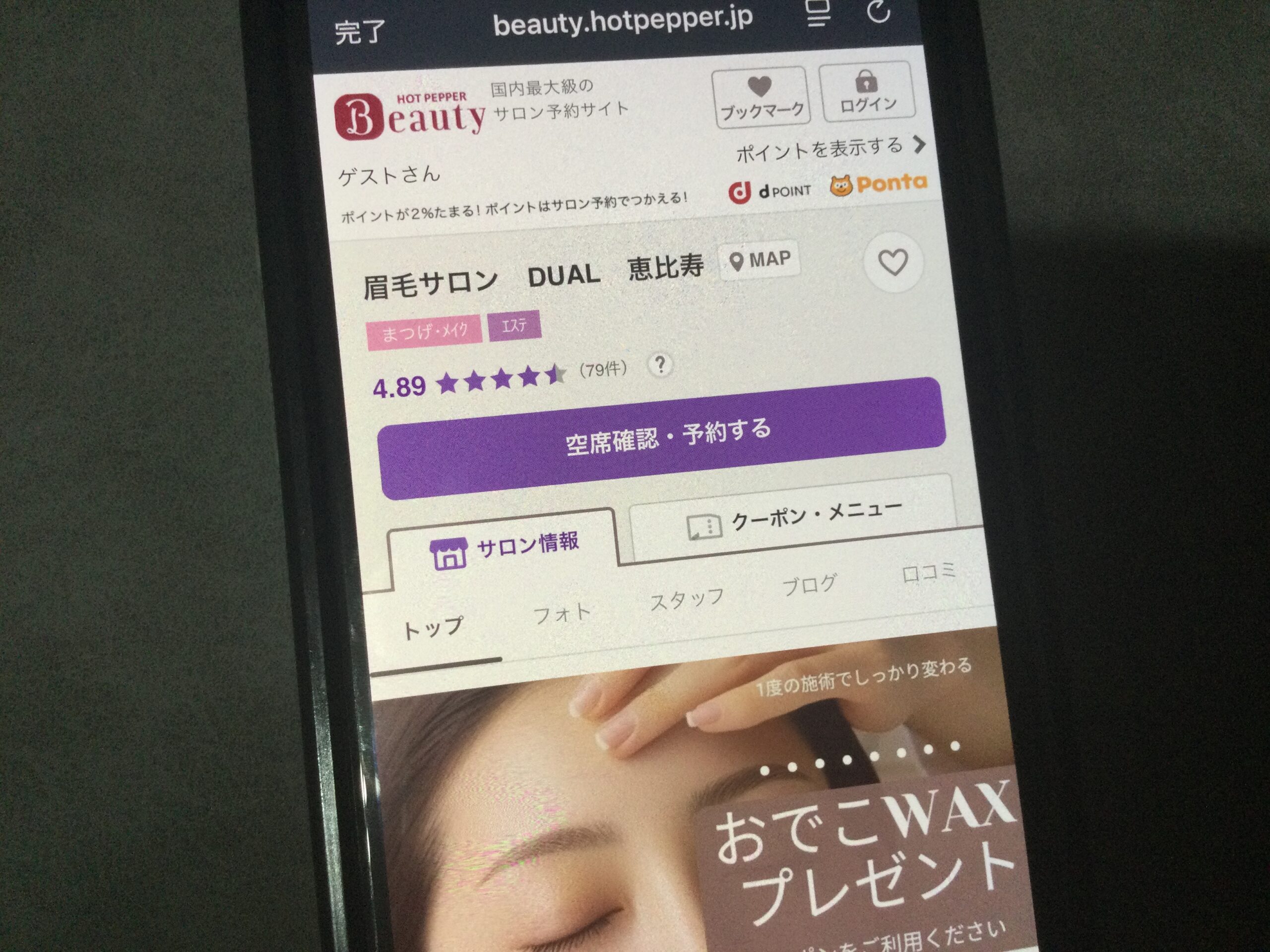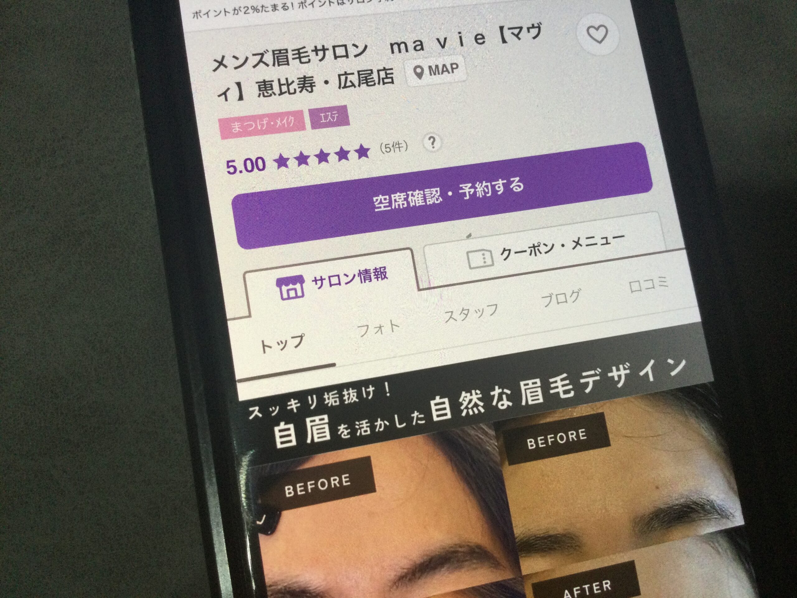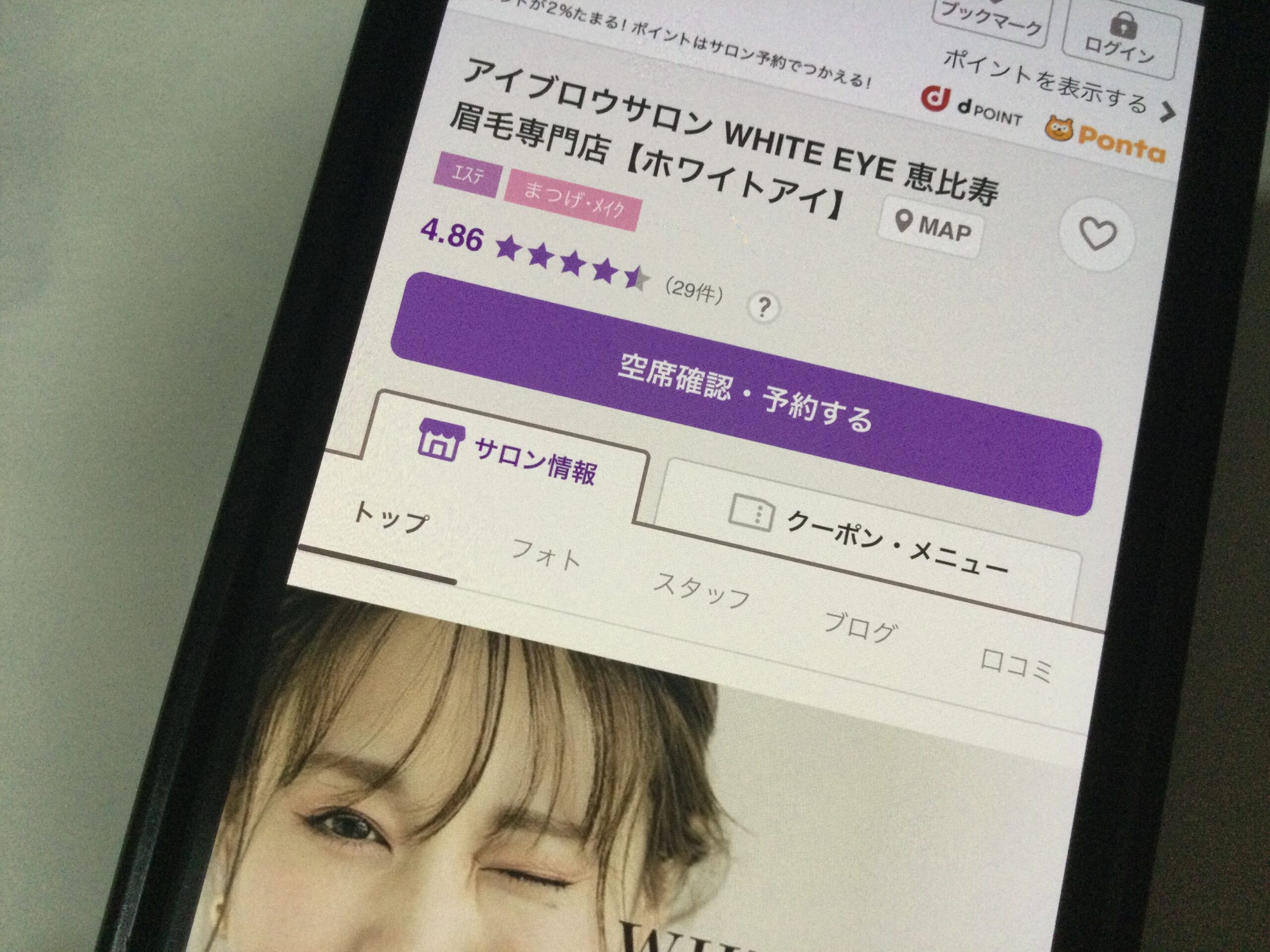 - 恵比寿駅から徒歩4分の立地にあり、平日12時から17時までの女性限定美眉アイブロウスタイリングが¥3,980と非常にリーズナブルです。