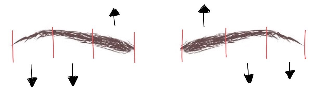 眉尻は眉頭と並行、もしくは少し上気味に整えましょう。