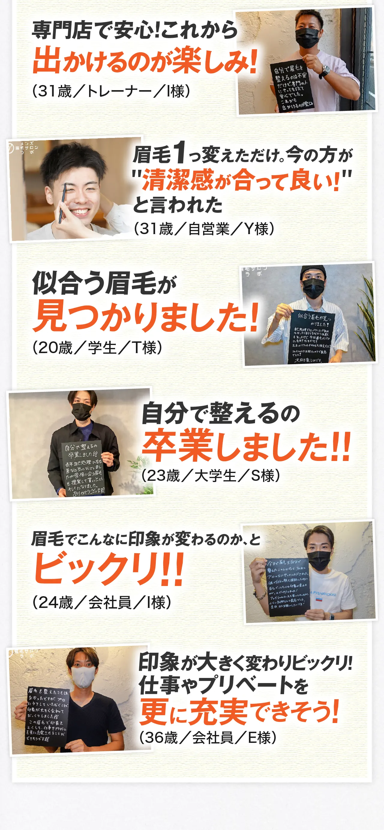 当サロンのお客さまは10代-60代と年齢層も幅広く、 眉毛サロンに行った事がないお客様がほとんど!初めて方が多く来店されるサロンですので、恥ずかしがらずに安心してお越しください。