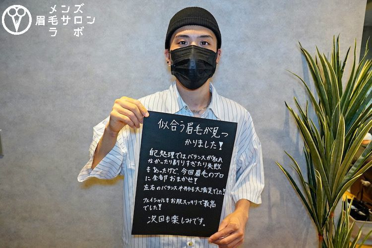 今まで眉毛を自分で整えたことしかなく、初めてプロの方にやっていただきました。鏡で自分の顔を確認した時に眉毛でこんなにも印象が変わるのか、とビックリしました!